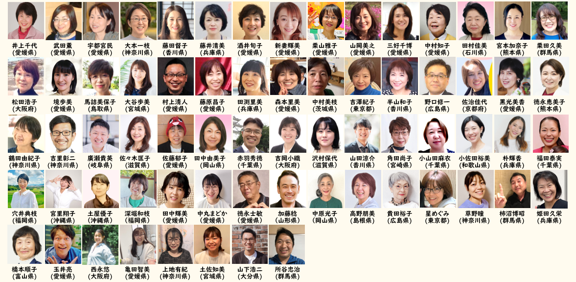 法務省愛媛県更生保護関係者/少年友の会四国大会/西条地区保護司会/宇和島人権擁護委員会/伊予郡市更生保護女性会/日本学校教育相談学会中四国大会/心臓病の子どもを守る親の会/愛媛県学校保健会/南予管内養護部会/県生涯学習センター講座/松山看護協会/南予地区事務職員研修会/新居浜市養護部会/中四国医師会病院看護部長会/なごみホスピタル/子どもたちのハートをつかめ/日本選択理論心理学会/上浮穴郡養護部会/南予高等学校・学校保健関係者研修会/広島県世羅町家庭教育講演会/広島県福山市家庭教育/宇和島市城南地区養護部会/西条市学校栄養職員研修会/西条市小松地区保護者研修会/ジュニアエコサミットイン福山/西予市PTA三瓶支部講演会/宇和島市養護部会研修会/宇和島市学校保健担当者研修会/香川県一宮・香南・香東PTA/神奈川県逗子市立久木小学校PTA/逗子市立小坪小学校PTA/逗子市立久木中学校PTA/大分県大野市公民館/公営うわじま土曜塾