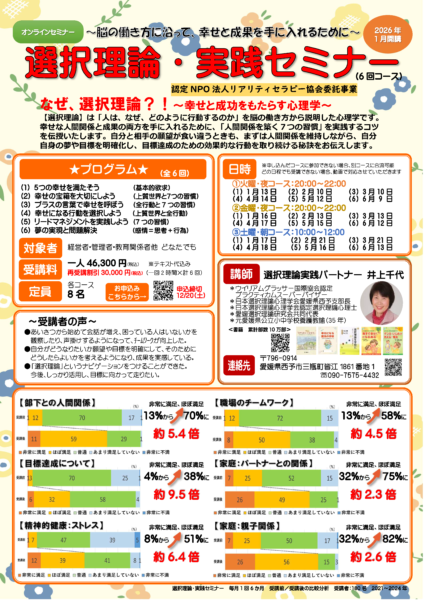 NEW募集チラシ 選択理論実践セミナー2026年1月開講(第4火夜・第4土朝)