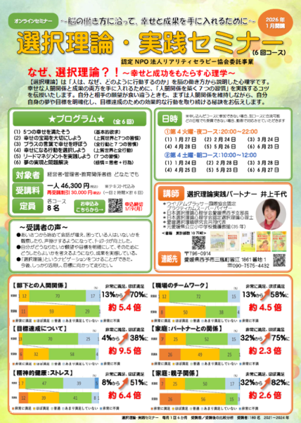 募集チラシ 選択理論実践セミナー2026年1月開講(火夜・金夜・土朝)