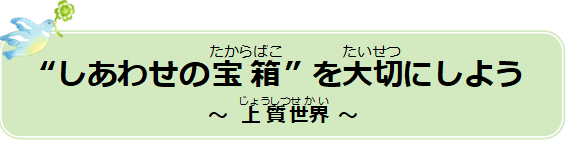 私たちの幸せな気持ちや、やる気のもとになる“宝物”が入っている幸せの宝箱(上質世界)を知り、